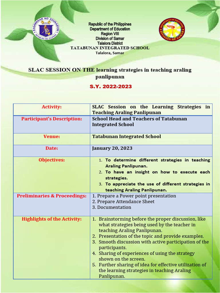 School Learning Action Cell (Slac) | PDF | Learning | Educational ...