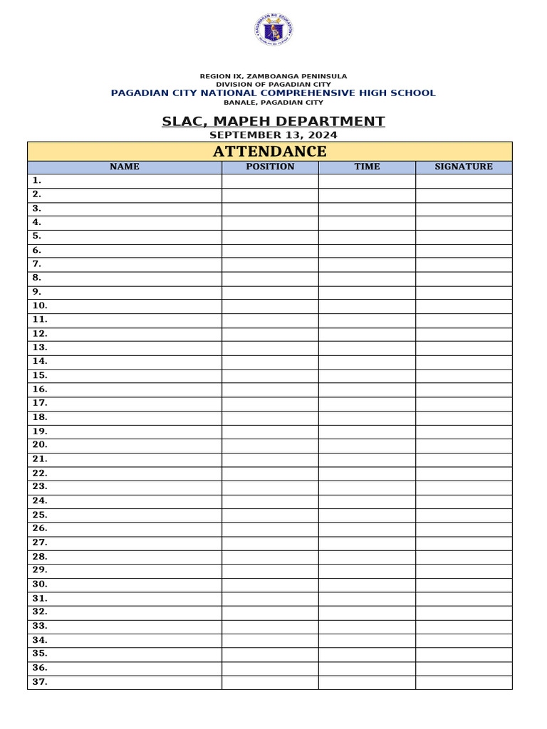 Slac Attendance Sheet | PDF