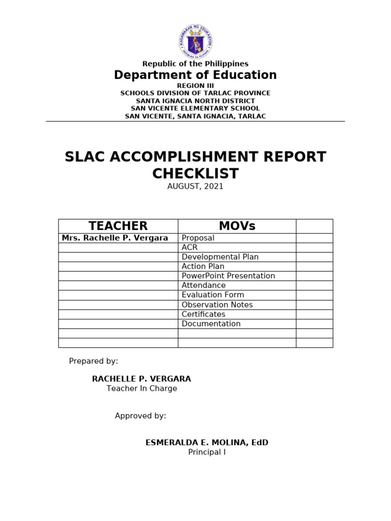 Accomplishment Report SLAC 3 | PDF
