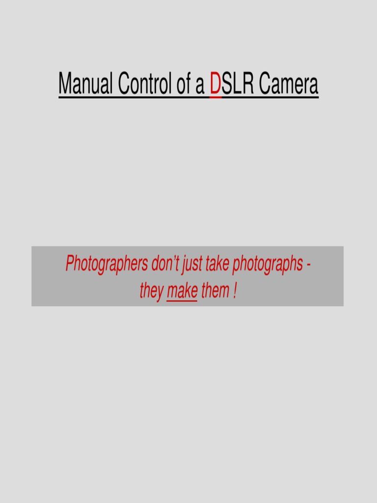 Basic Manual Control of A SLR Camera: Photographers Don't Just Take ...