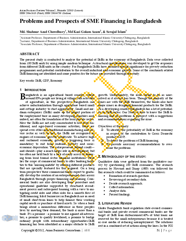 (PDF) Problems and Prospects of SME Financing in Bangladesh