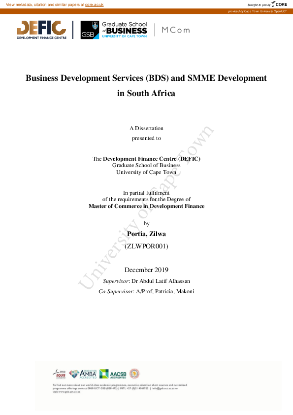 (PDF) Business Development Services (BDS) and SMME Development in South ...