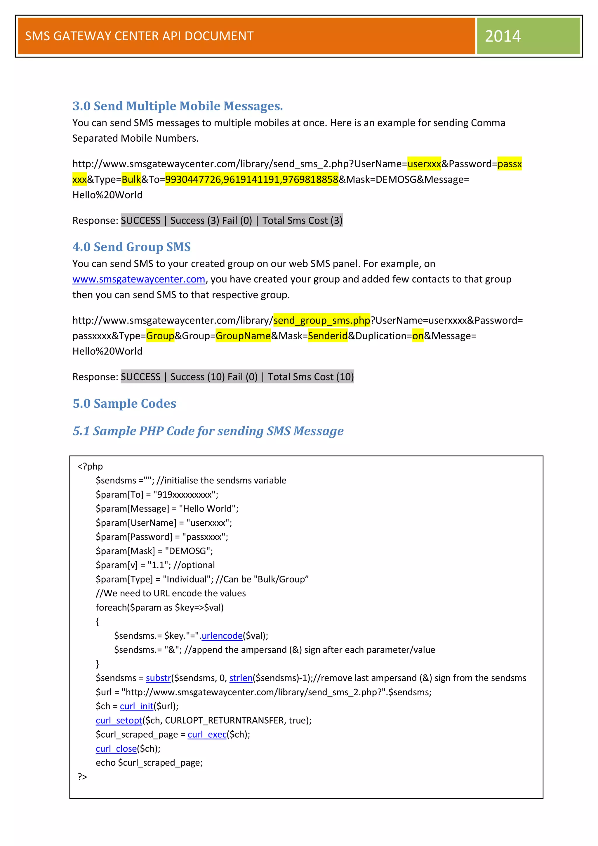 SMS Gateway Center API Document | PDF