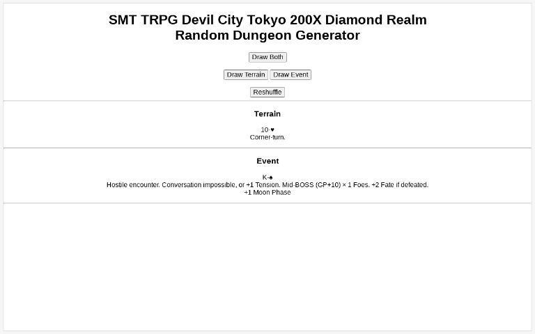 SMT TRPG Devil City Tokyo 200X Diamond RealmRandom Dungeon Generator