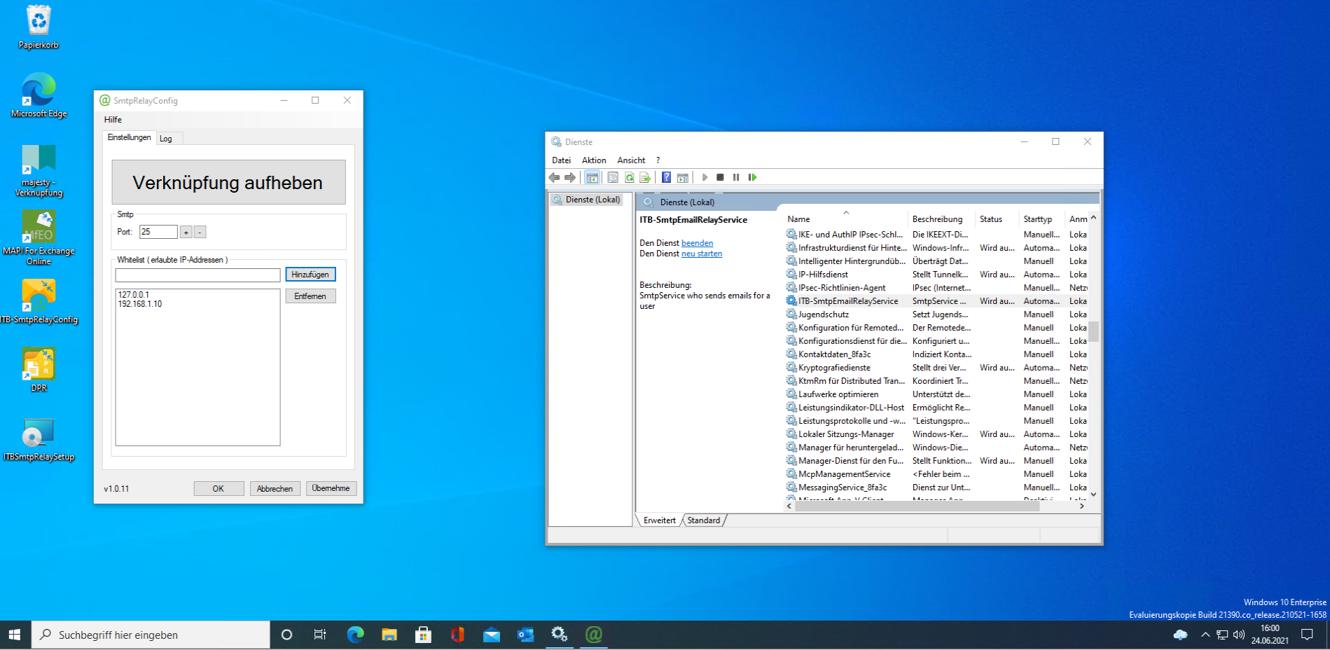 Kostenloser interner SMTP Sever für Microsoft / Office 365
