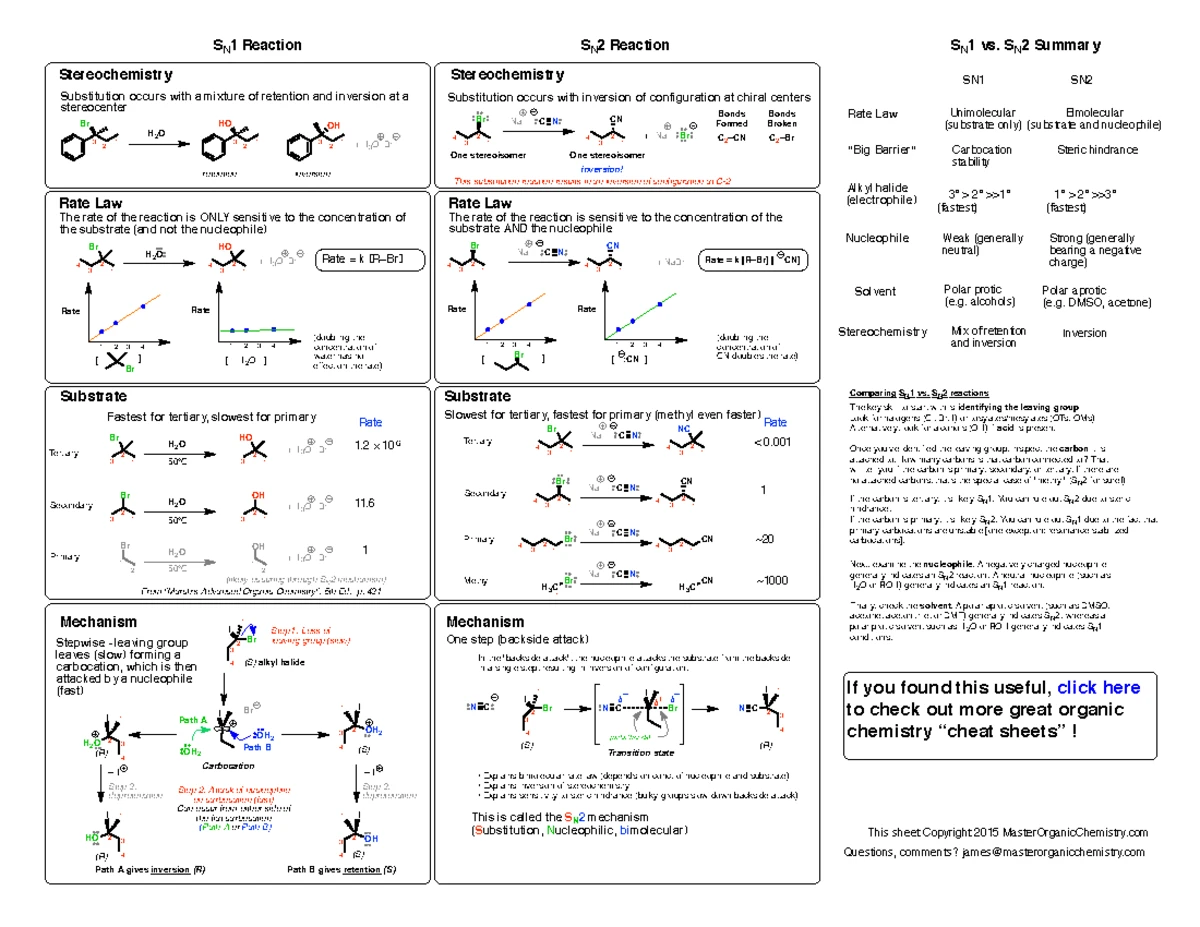 SN1, SN2, E1, E2 Reactions Overview - Sn1sn2e1e2printable - Studocu