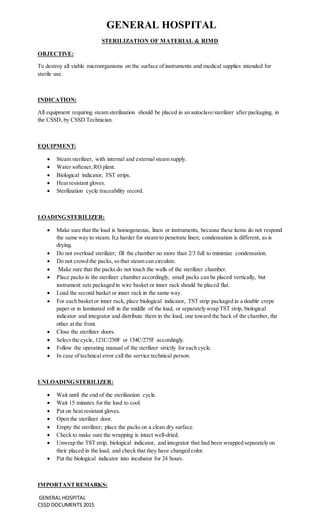 SOP Prosedur Umum Pelaksanaan CSSD | PDF