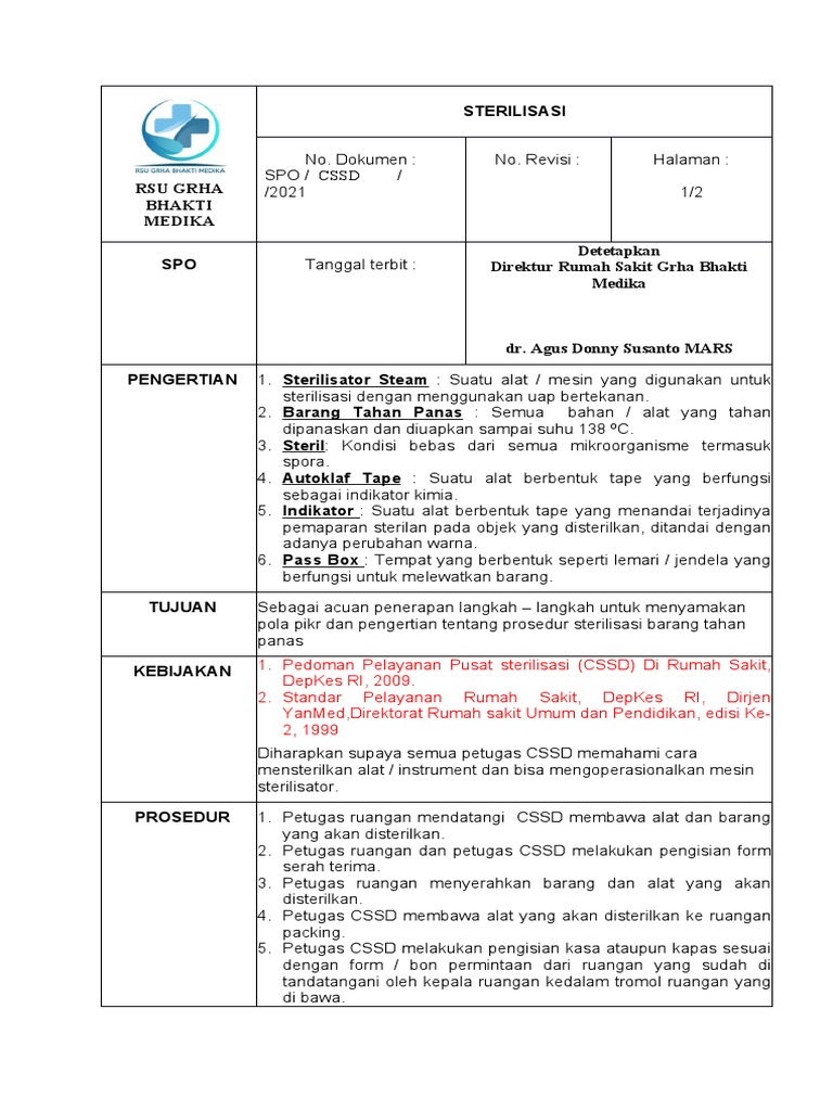 SOP CSSD Revisi Terbaru 2022 | PDF | Teknologi & Rekayasa | Sains ...