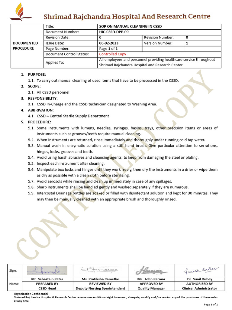 Manual Cleaning SOP for CSSD | PDF | Wellness