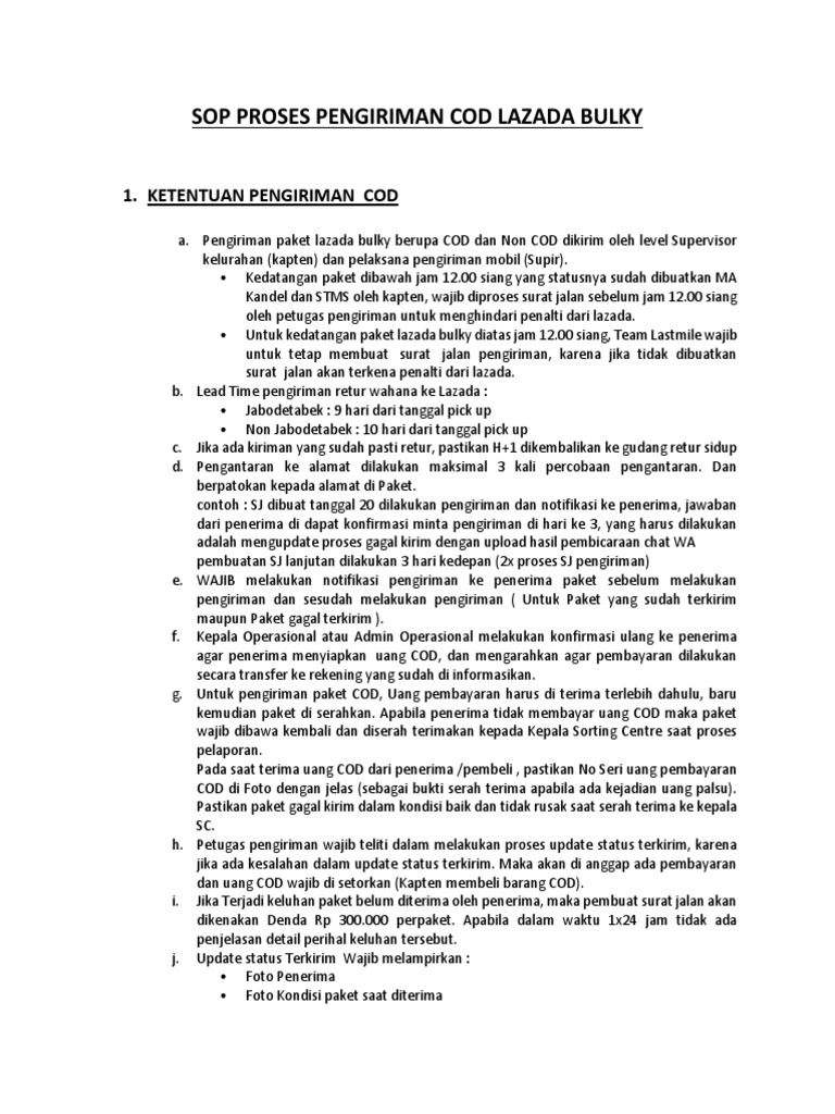 SOP Pengiriman COD Paket Bulky Lazada | PDF