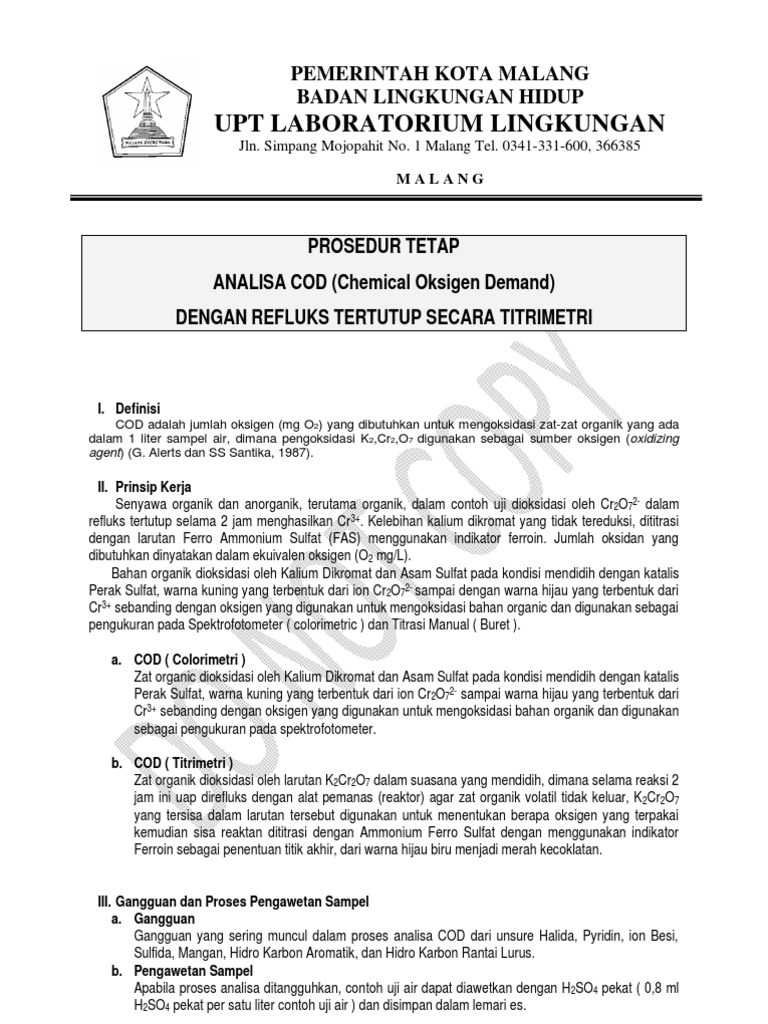 Sop Chem01 Closed-Reflux Ttrimetric-Test-Cod | PDF | Chemistry ...