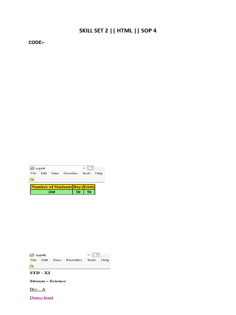HTML Code Examples for SOP 4 | PDF