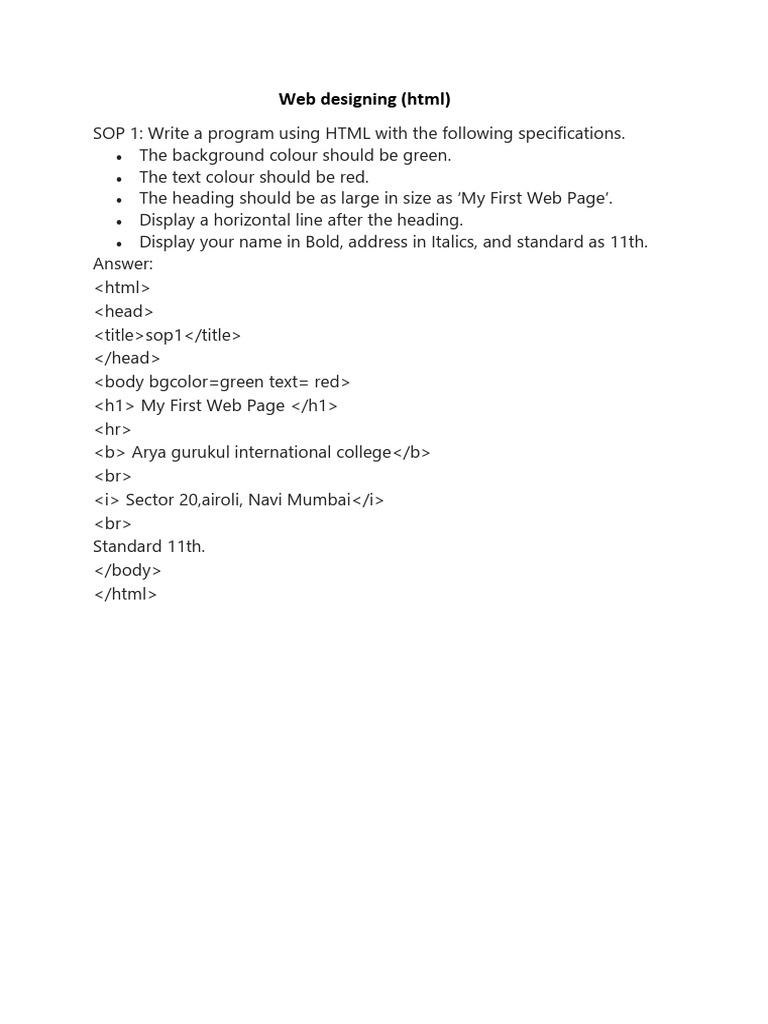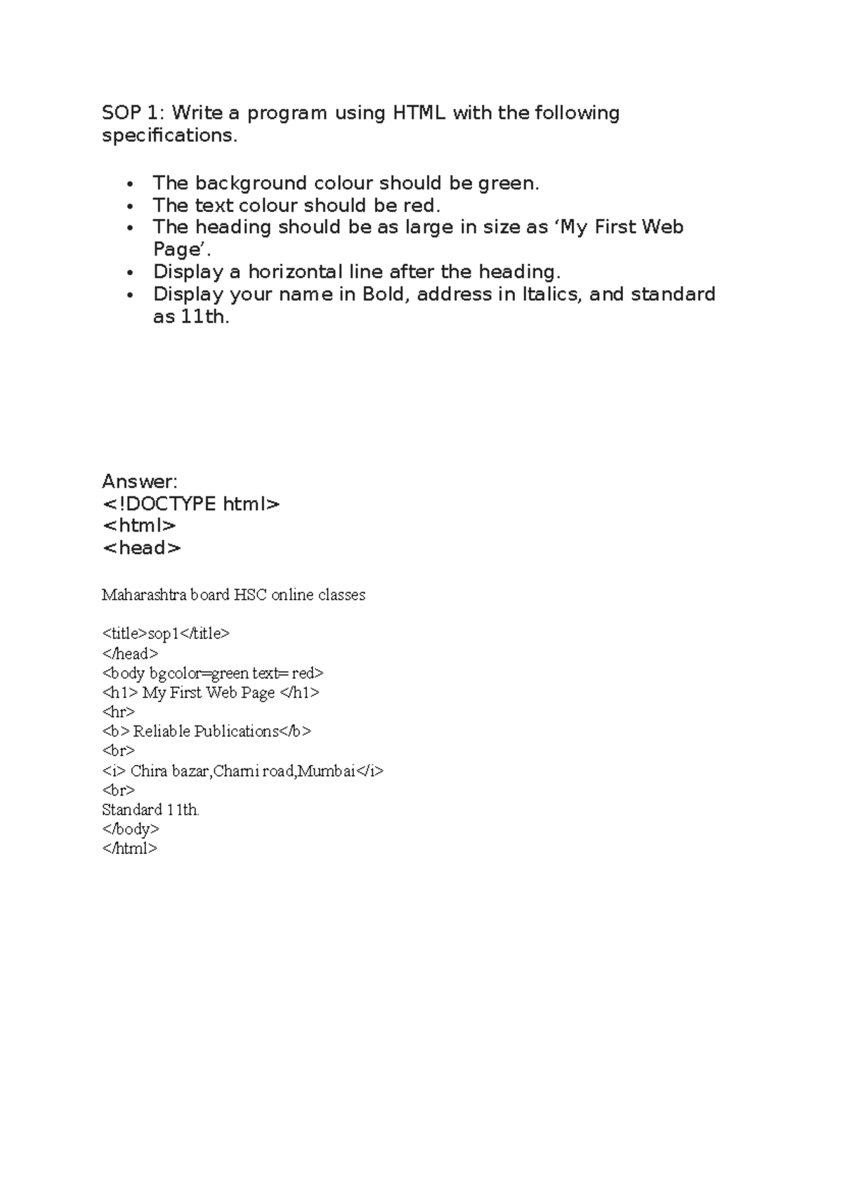 SOP 1 - pls chk - SOP 1: Write a program using HTML with the following ...