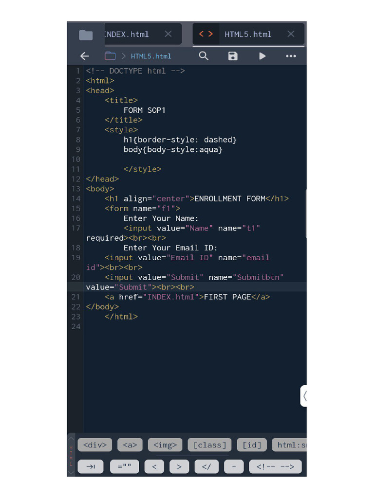 IT code HTML - Skip it not imp - SOP 1: Creation of website using HTMLS ...