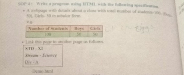 SOP : Write a program using HTML with the following specification ...