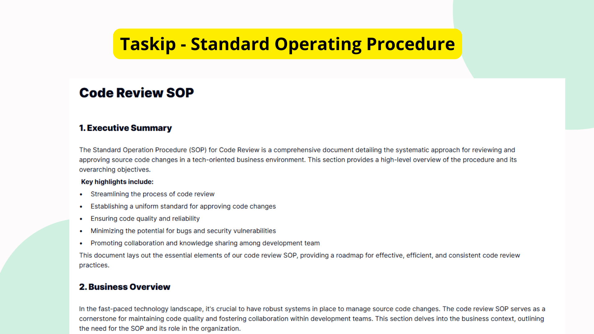 Code Review SOP Template for Process Consistency | Taskip