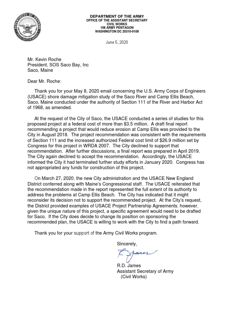 Letter To Sos | PDF | United States Army Corps Of Engineers | United ...