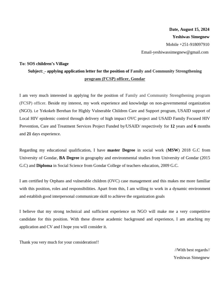 Cover letter for sos children village - LazyApply
