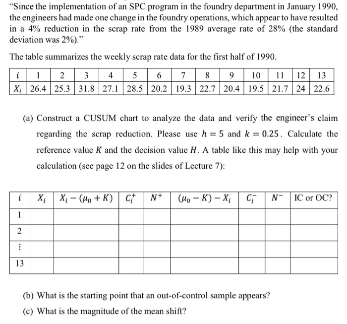 Solved Problem 1 "Since the implementation of an SPC program | Chegg.com