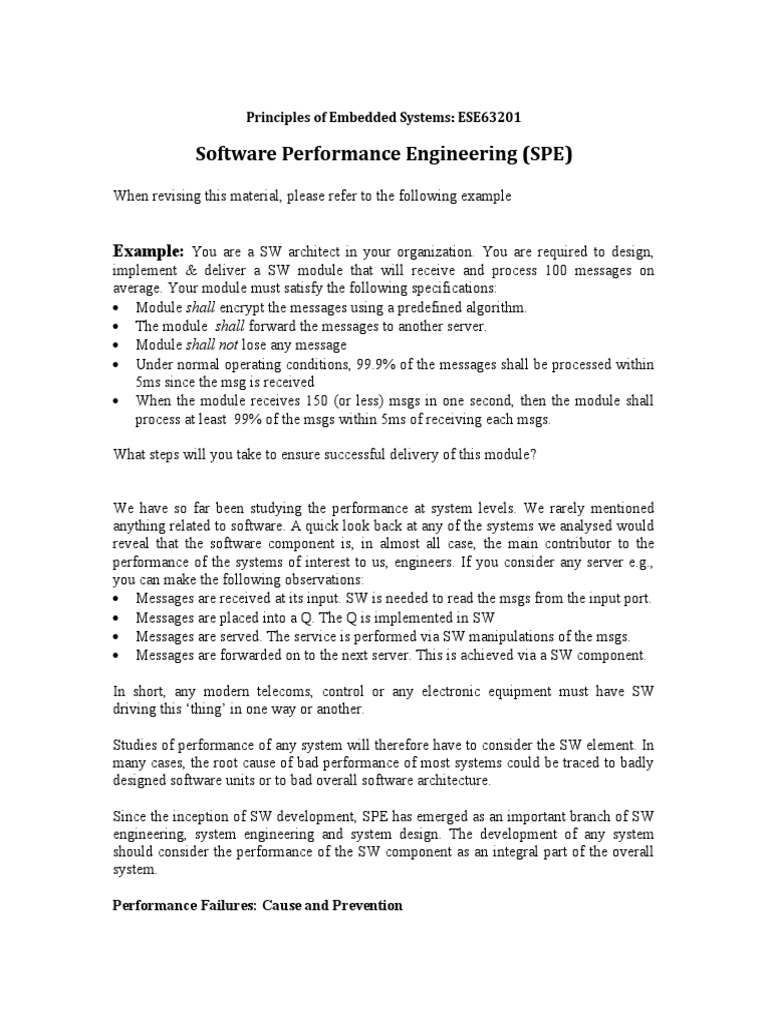 Software Performance Engineering (SPE) : Example | PDF | Engineering ...