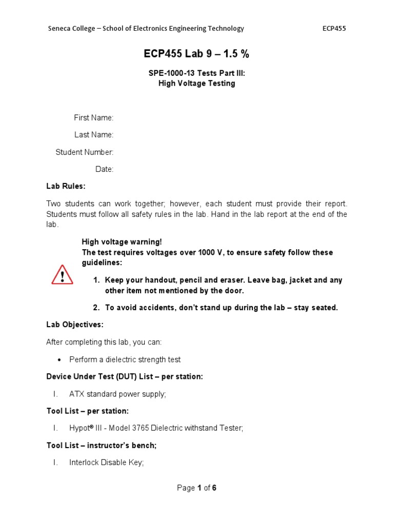 Ecp455 - Lab 9 - Spe-1000-13 Tests Part III | PDF | High Voltage ...
