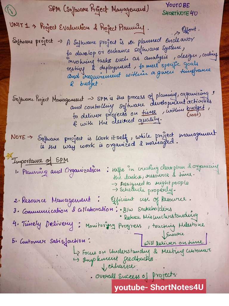 Unit 1 - Software Project Management (SPM) Notes and Overview - Studocu