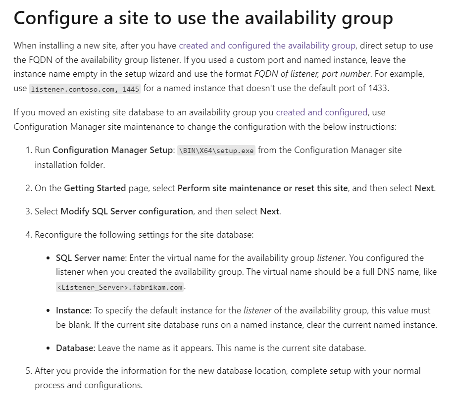 Configuring SCCM to use SQL AOAG - Need help if something goes wrong ...
