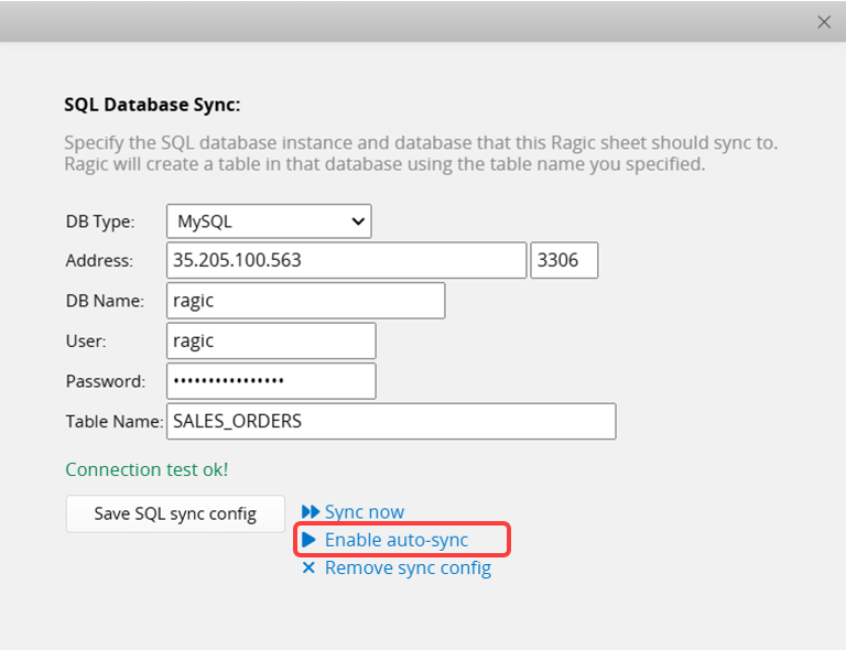 Click the SQL Sync Database tab and select Create SQL Sync Database