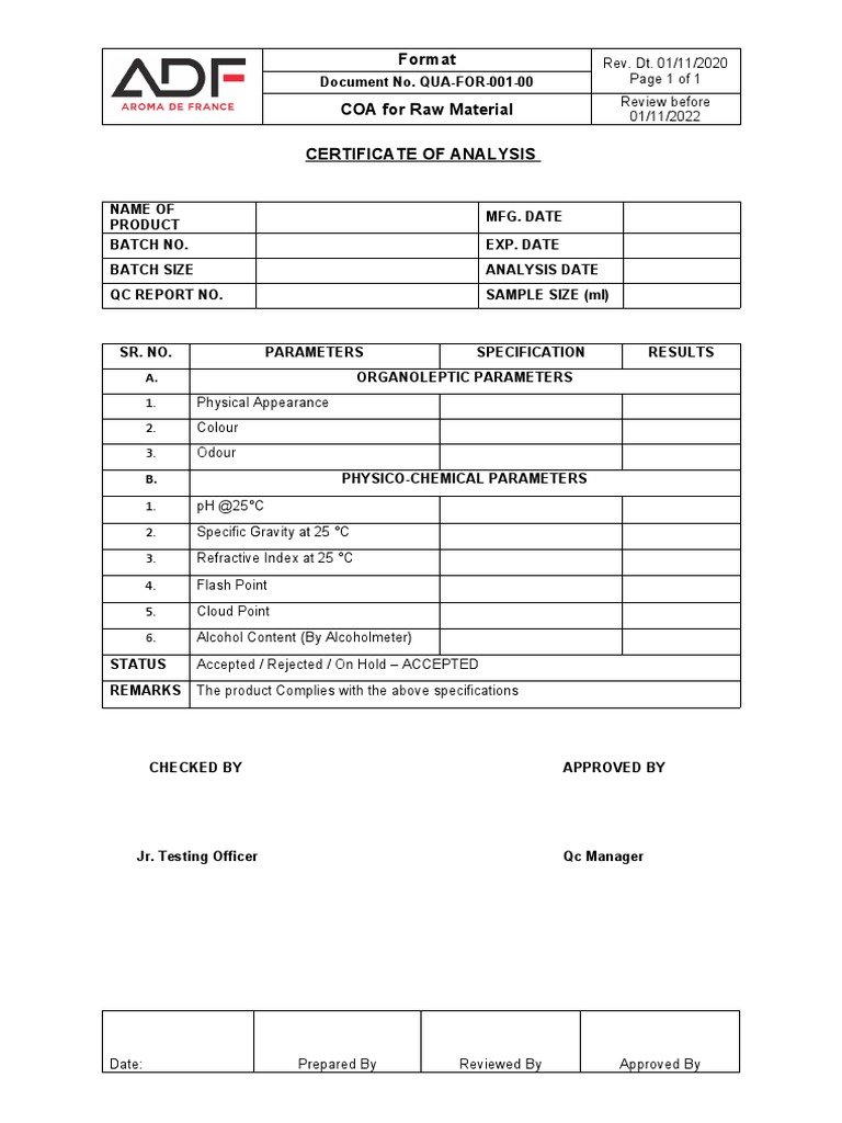 QUA-FOR-003-00 COA For Finished Goods | PDF