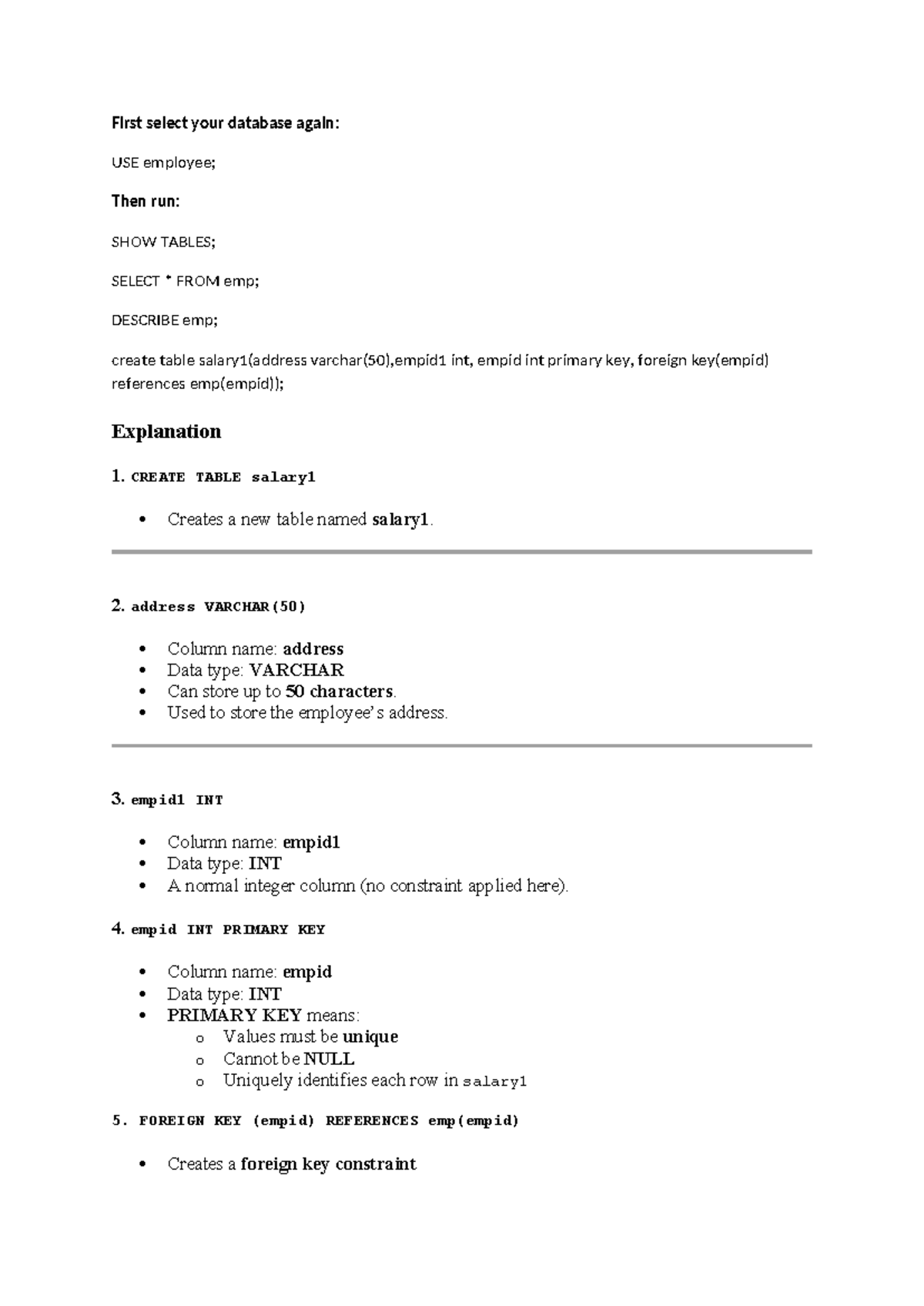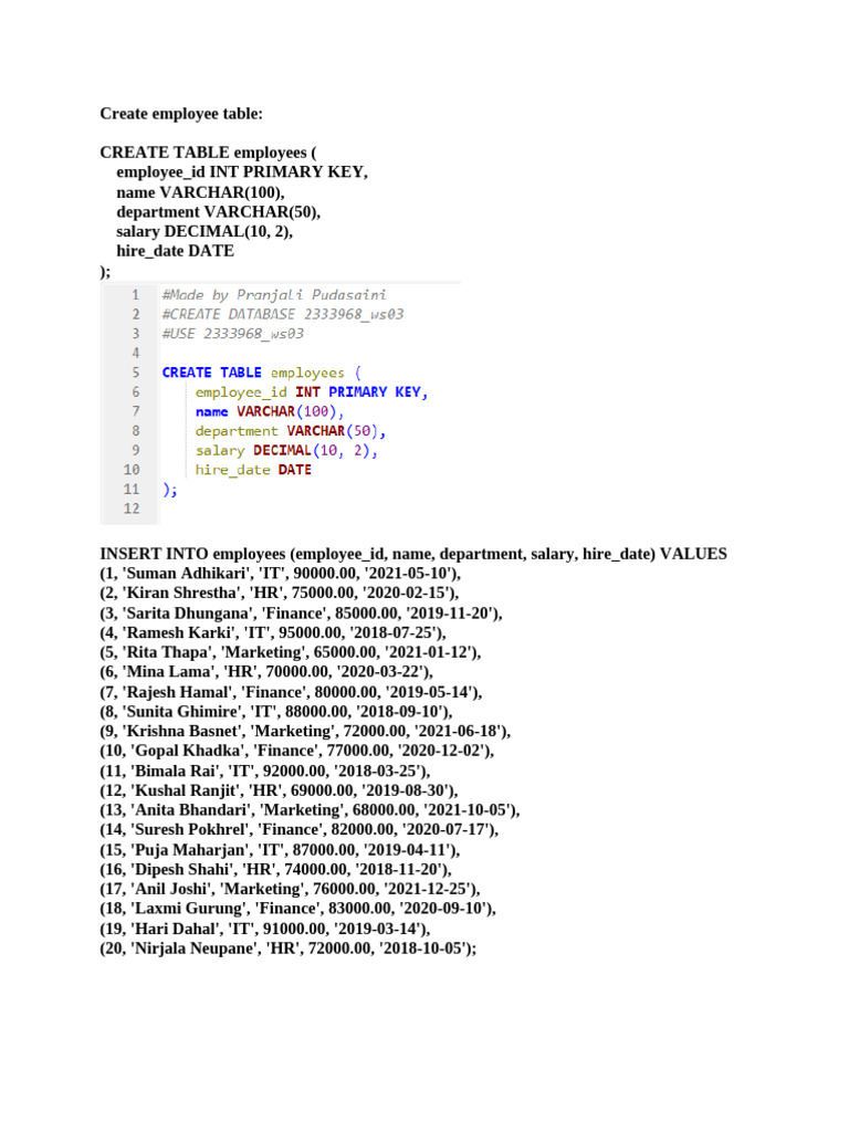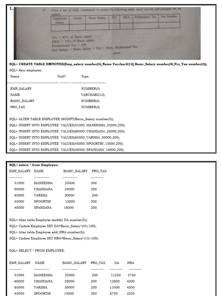Database Management: CREATE TABLE salary1 Explained - Studocu