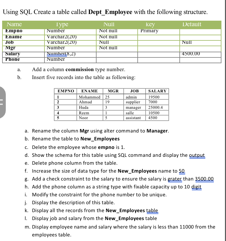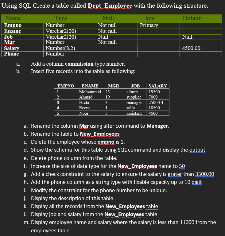 Solved Using SQL Create a table called Dept_Employee with | Chegg.com