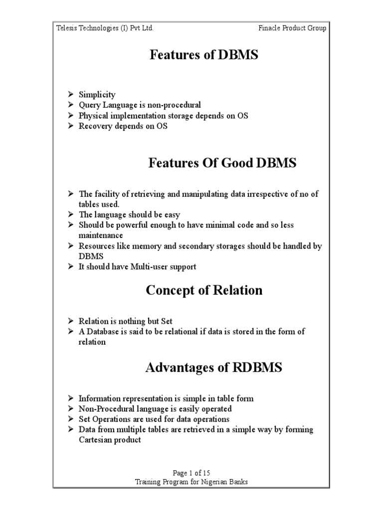 Features of DBMS: - Relation Is Nothing But Set | PDF | Pl/Sql | Sql