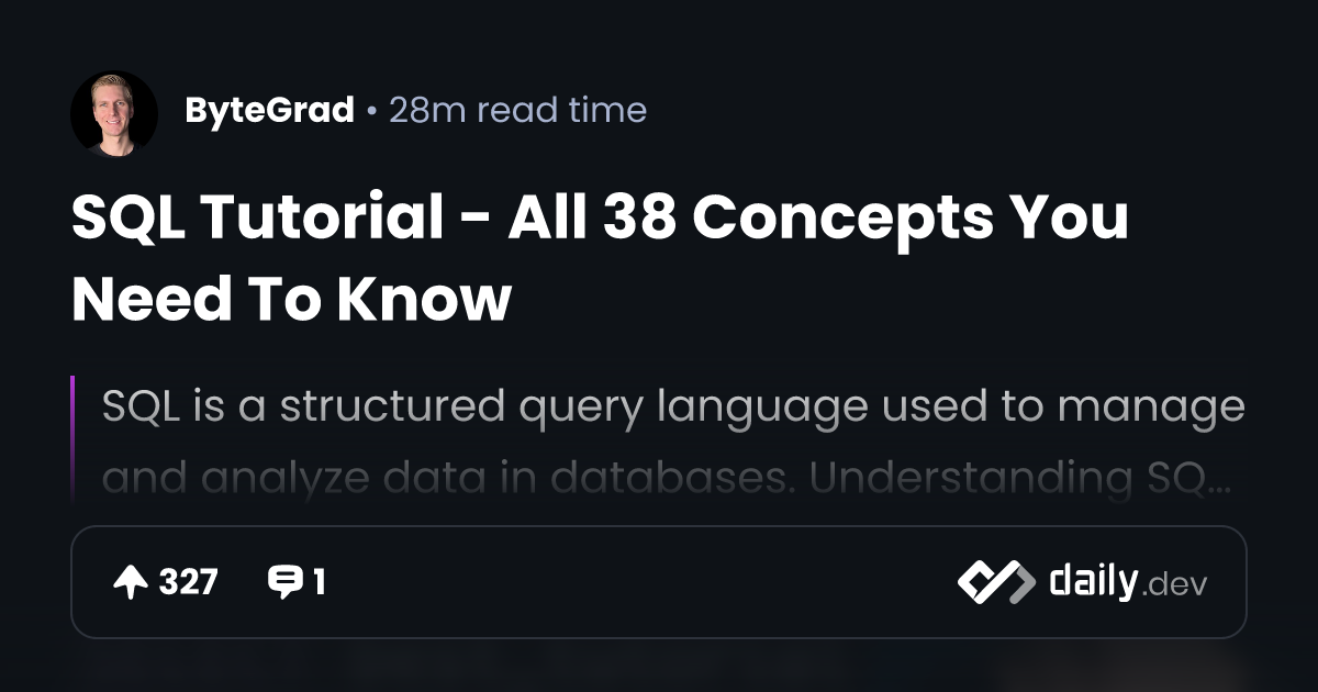 SQL Tutorial - All 38 Concepts You Need To Know | daily.dev