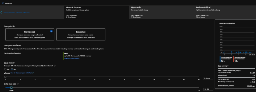 Azure SQL Server Pricing