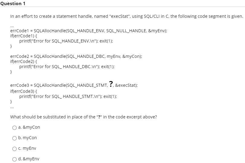 Solved Question 1 In an effort to create a statement handle, | Chegg.com