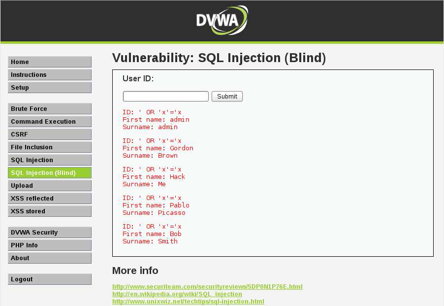 Kali Linux SQL Injection Commands List for DVWA - Studocu