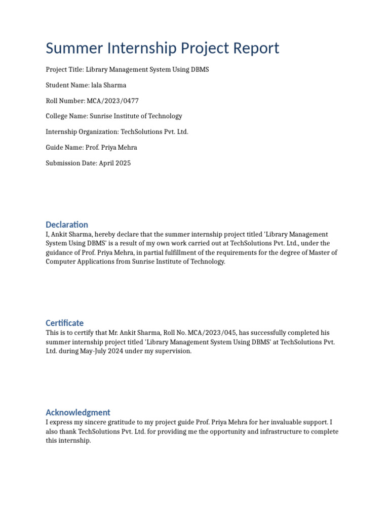 MCA_Internship_Project_Report (11 | PDF | Databases | My Sql