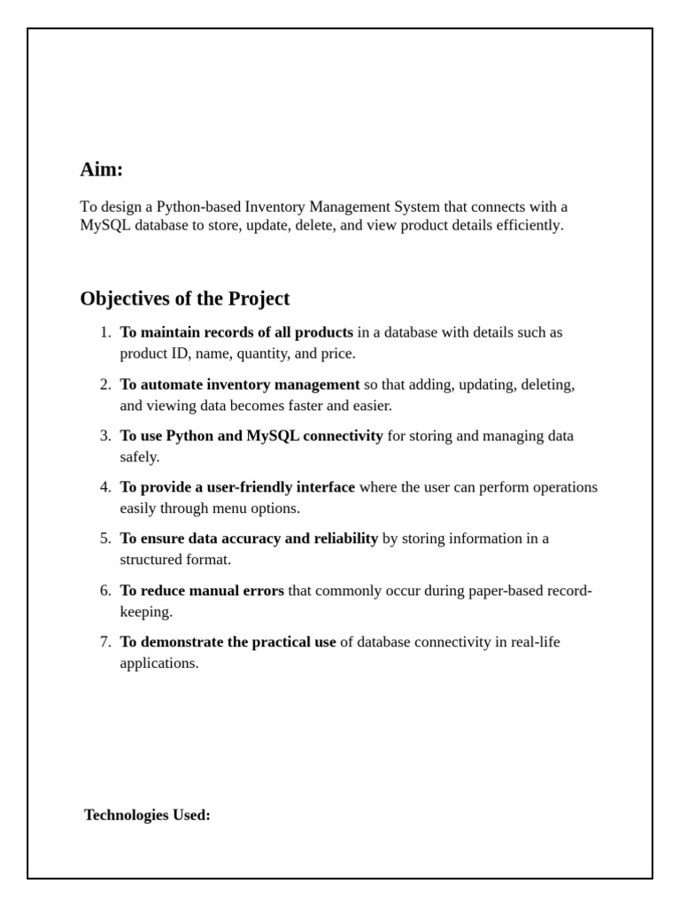 Objectives of the Project | PDF | Databases | Sql