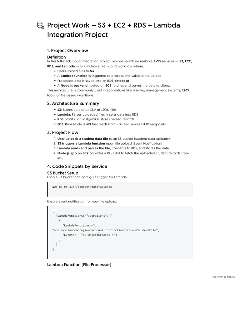 Project Work - S3 + EC2 + RDS + Lambda Integration Project | PDF ...