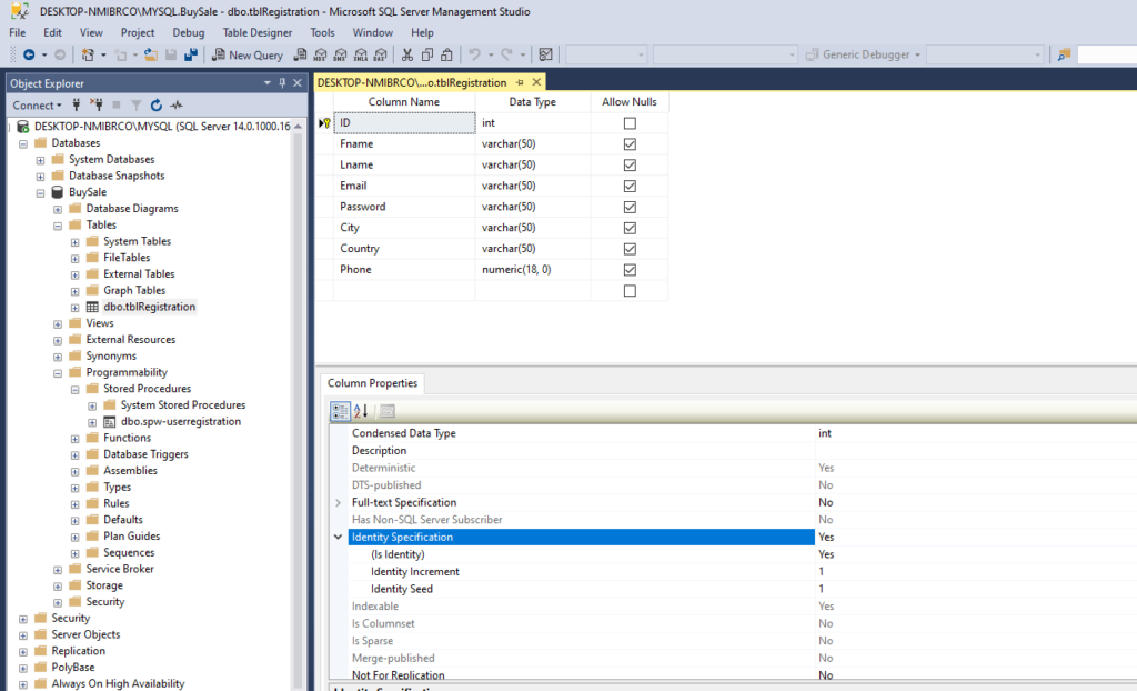 INSERT Stored Procedure in SQL Server