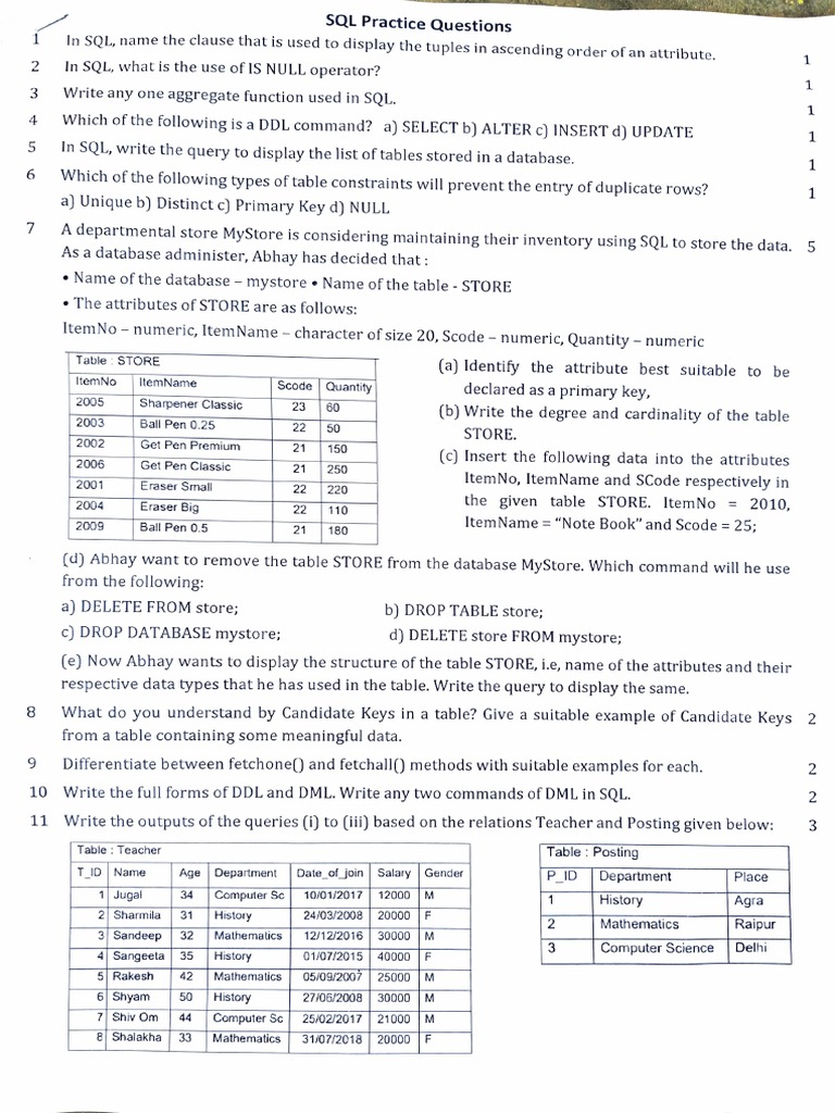 SQL Practice Questions for Stacks, Lists, Dictionaries and Database ...