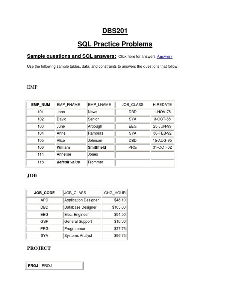 Important SQL Practice Questions With Answers | PDF | Databases | Table ...