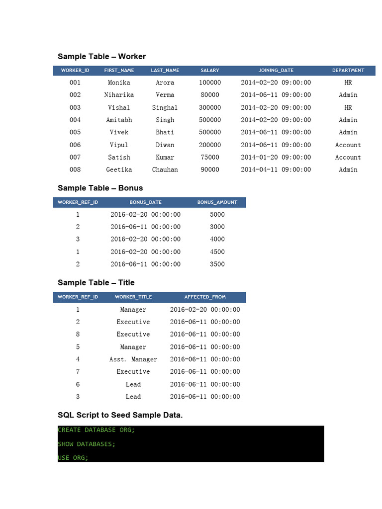 Basic SQL Queries Questions and Answers | Salary | Employment