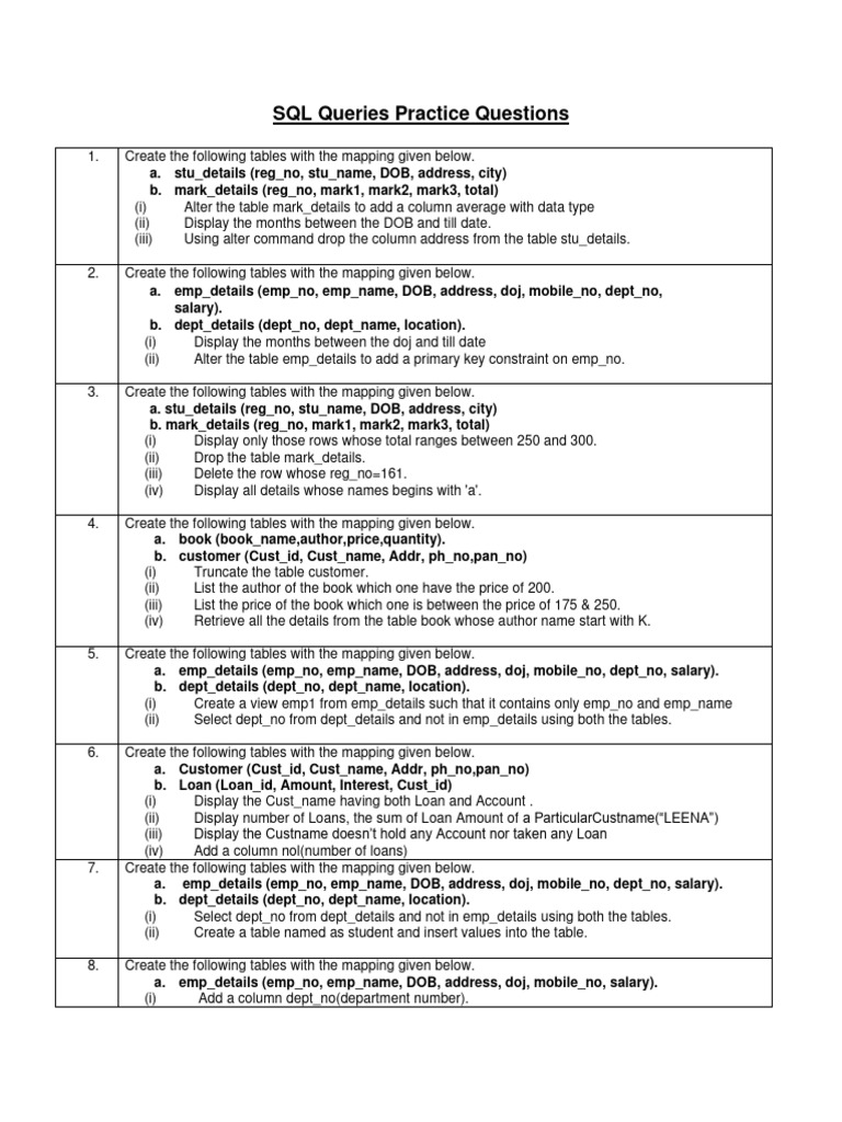 SQL-1 - SQL practice Quistions and answer - Database Questions Database ...
