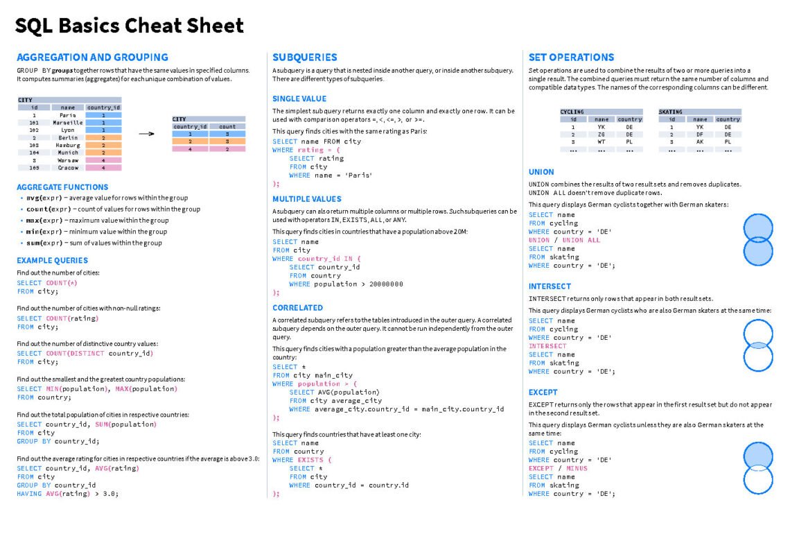 Sql Queries Cheatsheet Download Printable PDF | Templateroller