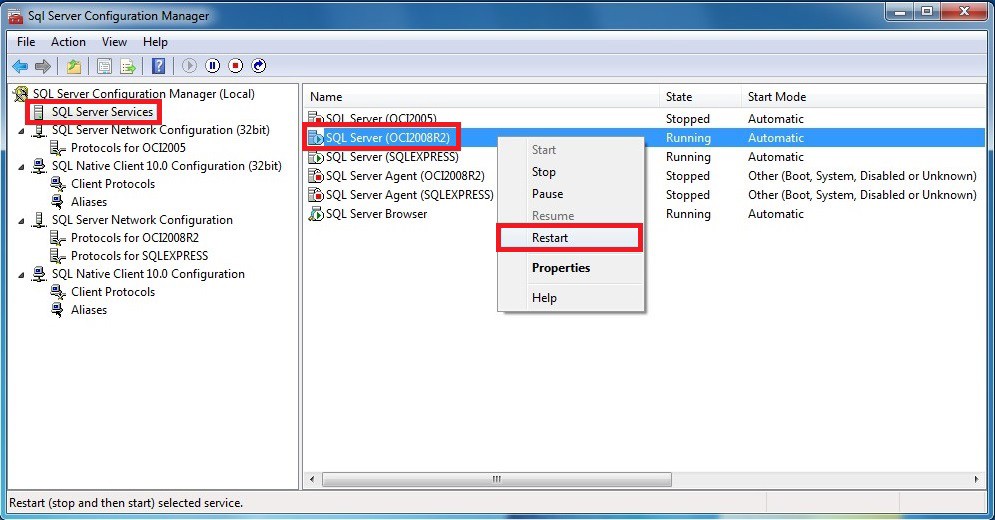 Sql Server Configuration Manager Start, Stop And Restart SQL Server