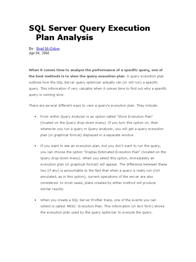 SQL Server Query Execution Plan Analysis | PDF | Database Index ...