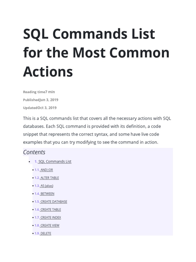 SQL Commands List For The Most Common Actions: 7 Min Jun 3, 2019 Oct 3 ...