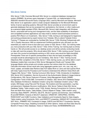 SQL Training Course: Outline @SQL Computerized Certificate Training Course