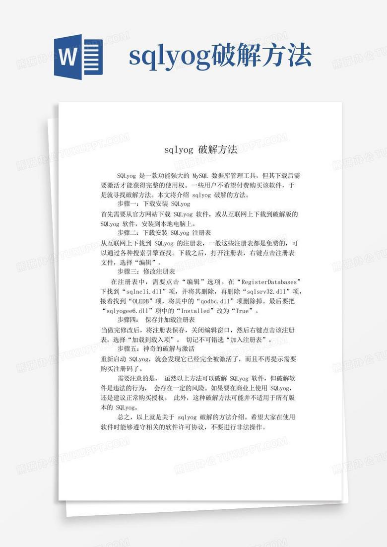 sqlyog破解方法Word模板下载_编号qwdjznzw_熊猫办公